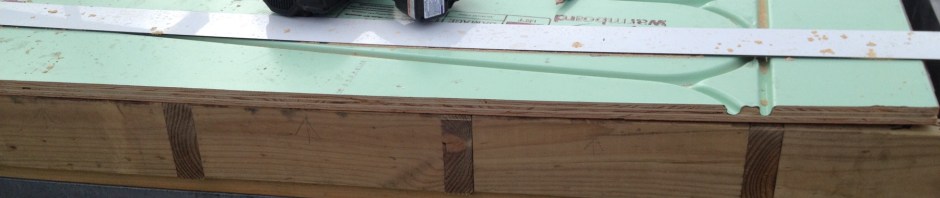 Already we can see that the normal swelling and bowing is taking place. The wet and slightly swollen tongue and groove of the warmboard made the mating of the two slightly more difficult, but still manageable. And when routing the smaller groove on the short end (for our plastic tongue to fit) the wet ply dust of the Warmboard would not flow through the biscuit cutter’s clearing tube, and made it difficult to make a clean channel.