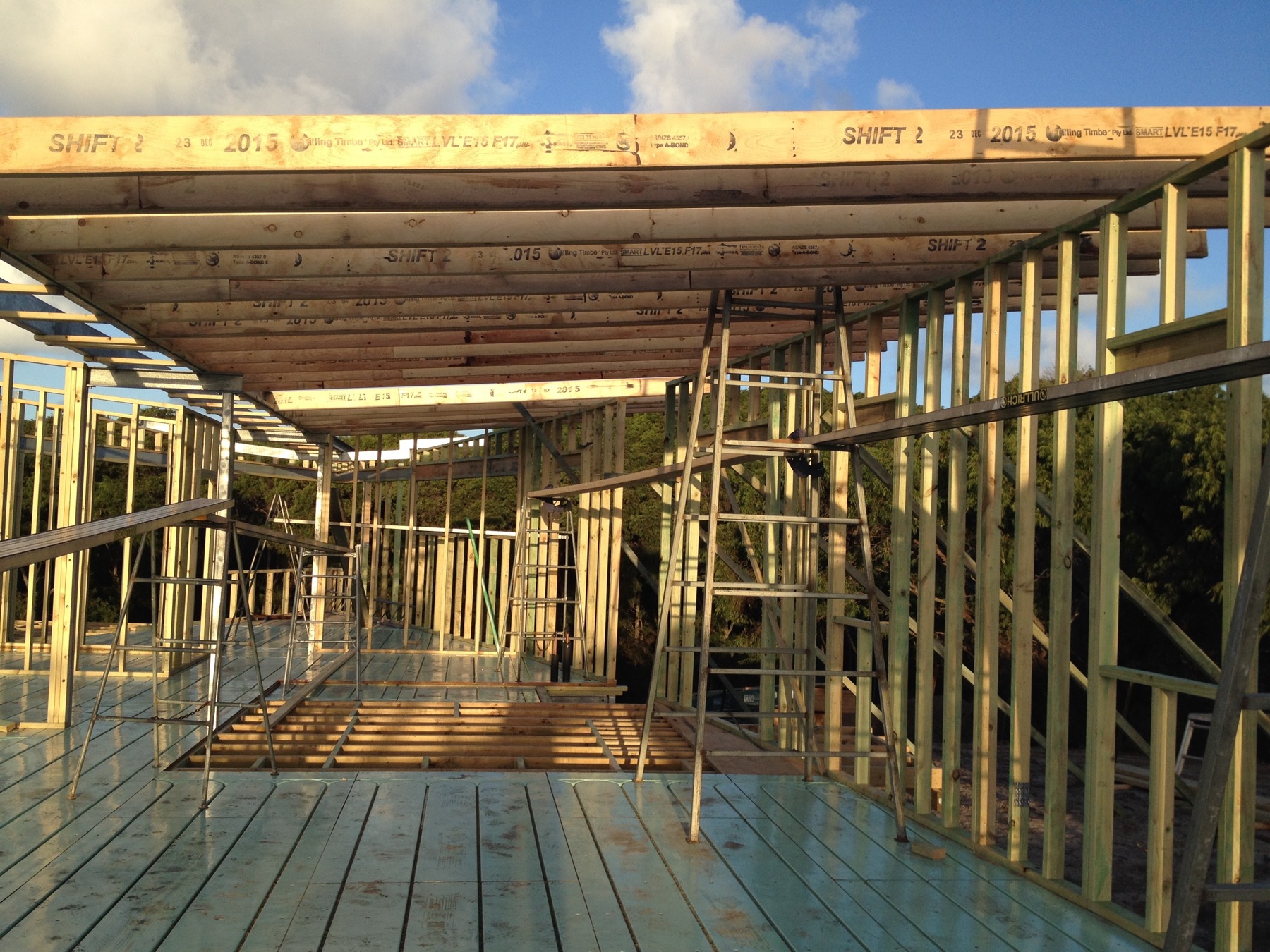 Roof beams going on